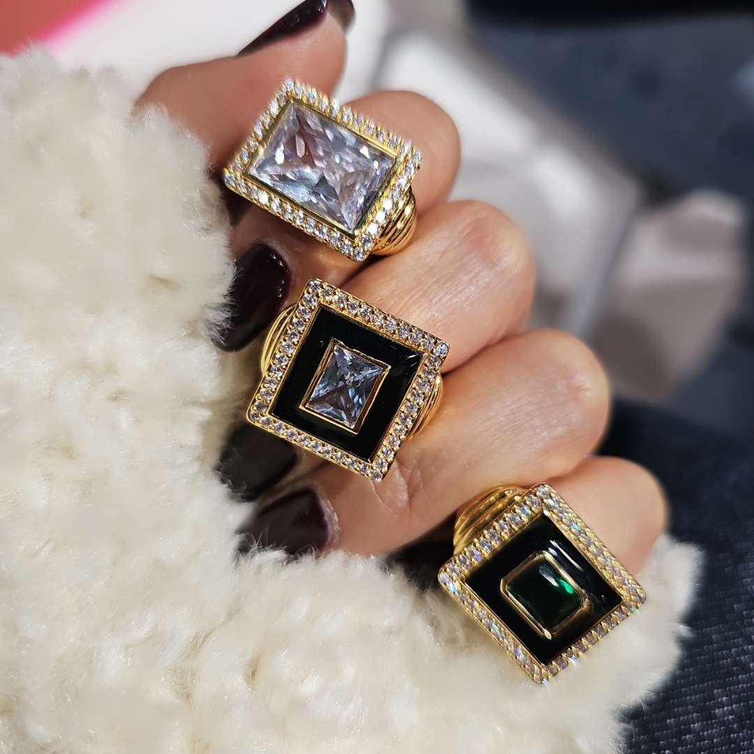 Enamel, circonias y circonia gigante, bronce chapado 24k