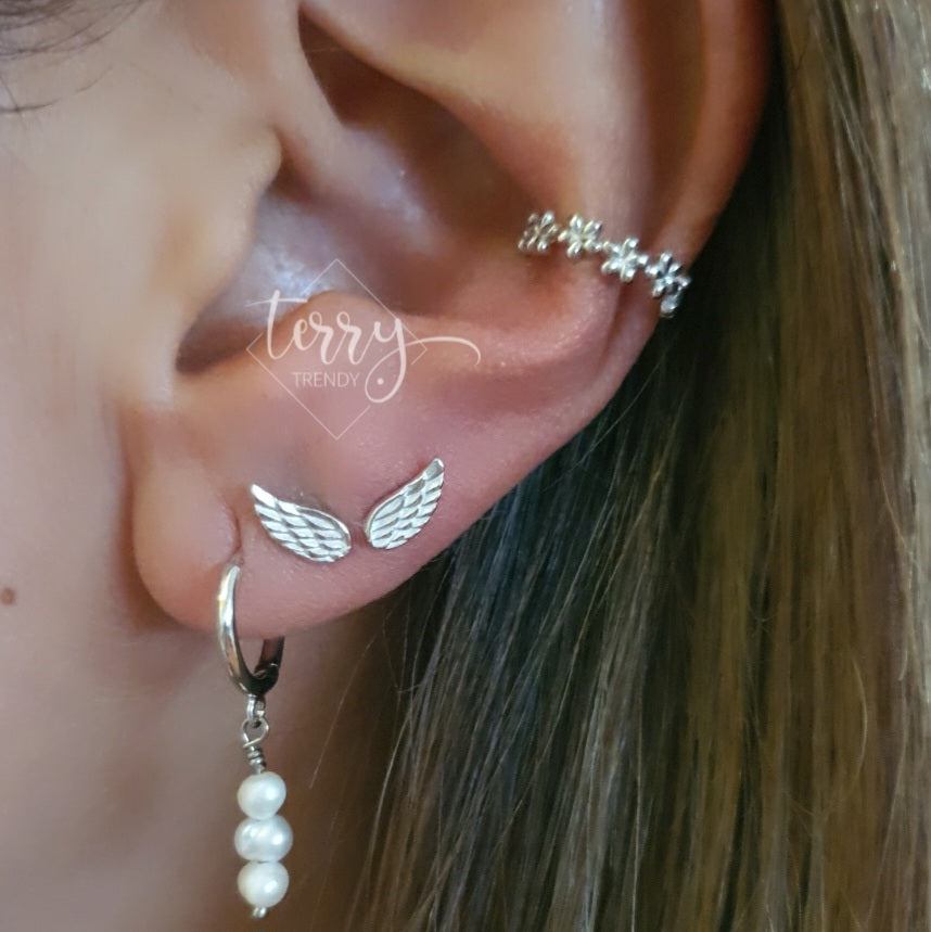 Arete Ala chica plata 925 y plata 925 con baño de oro