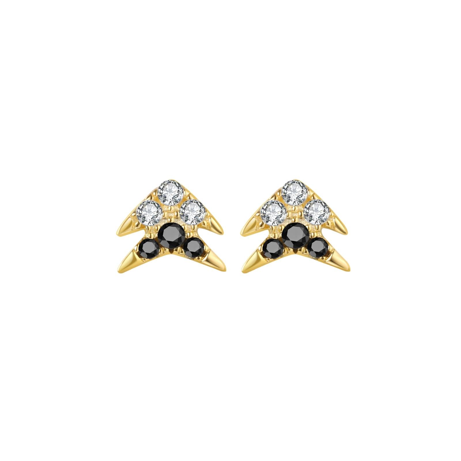 Arete flecha doble, en plata 925 y plata 925 con baño de oro ambos con circonias