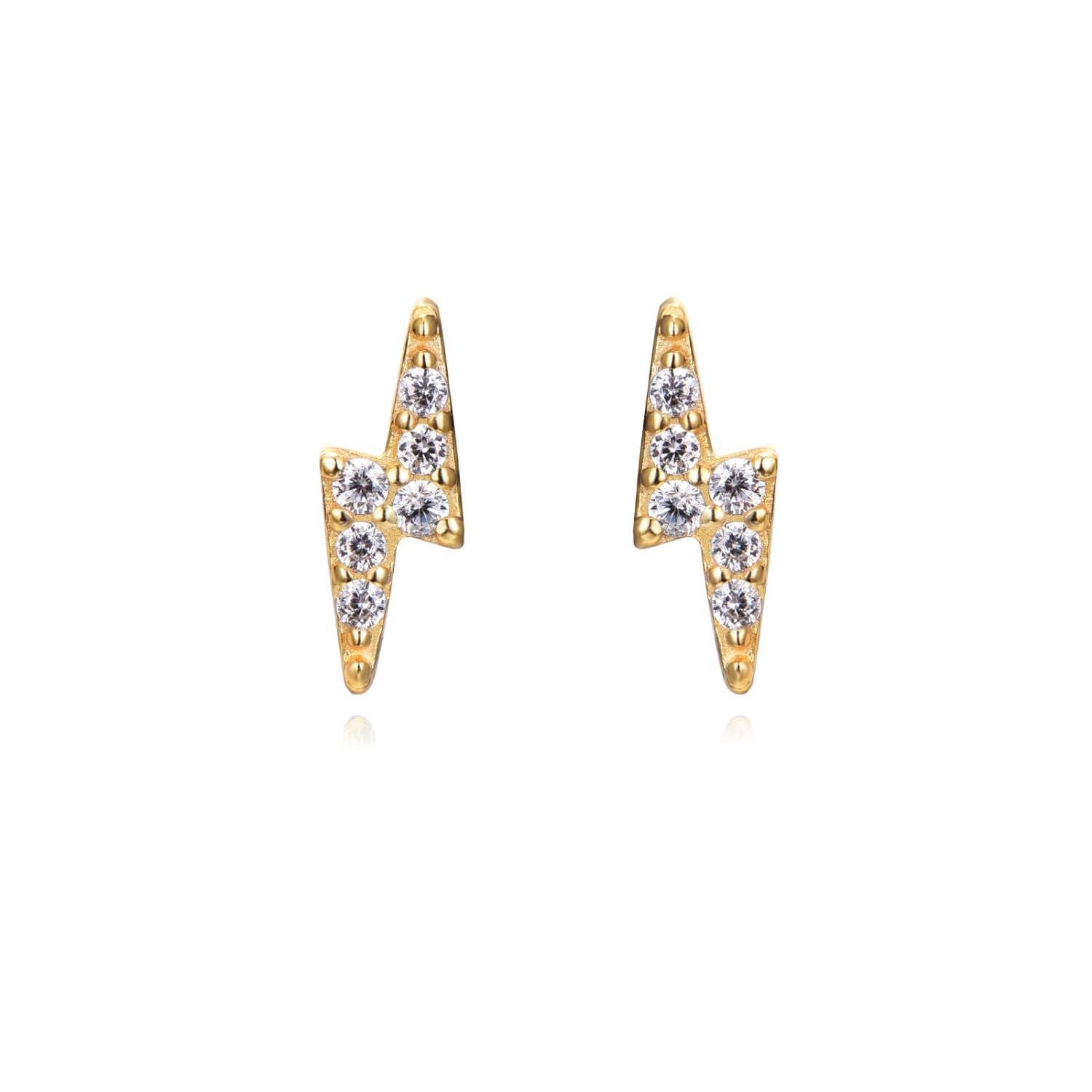 Arete rayo de 7 mm, plata 925 y plata 925 con baño de oro. Ambos con circonias