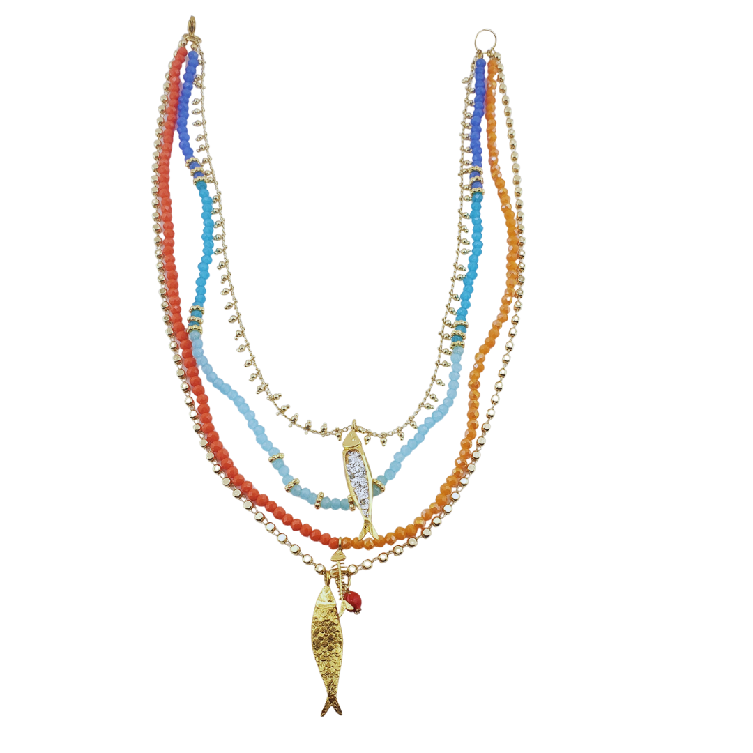 Cadena 3 sardinas cristal murano enamel