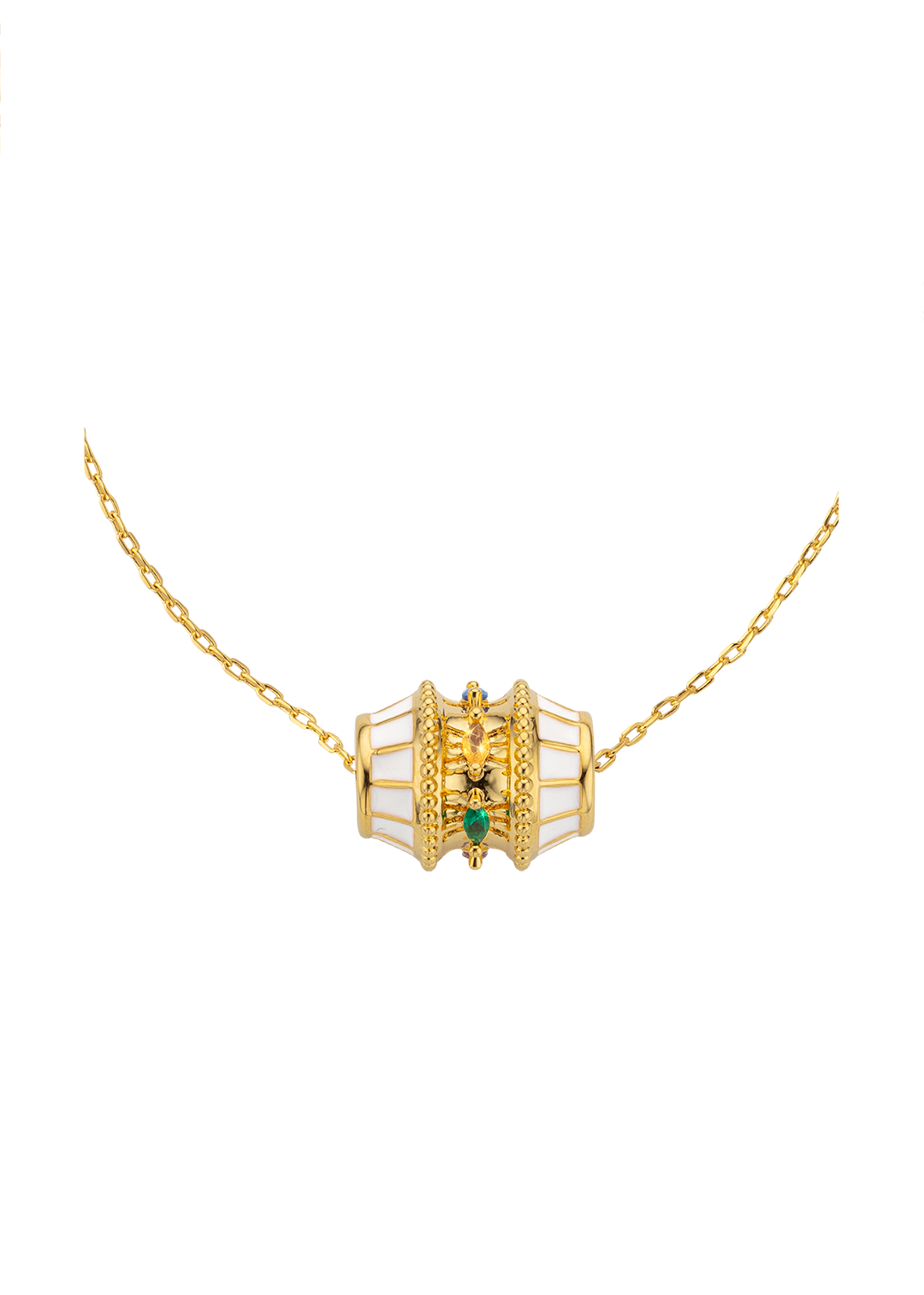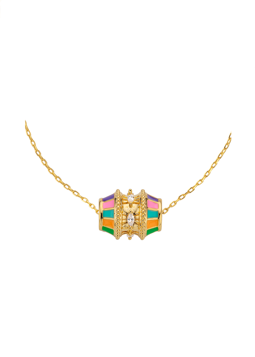 Cadena y barril en bronce chapado en 24k, con enamel en colores