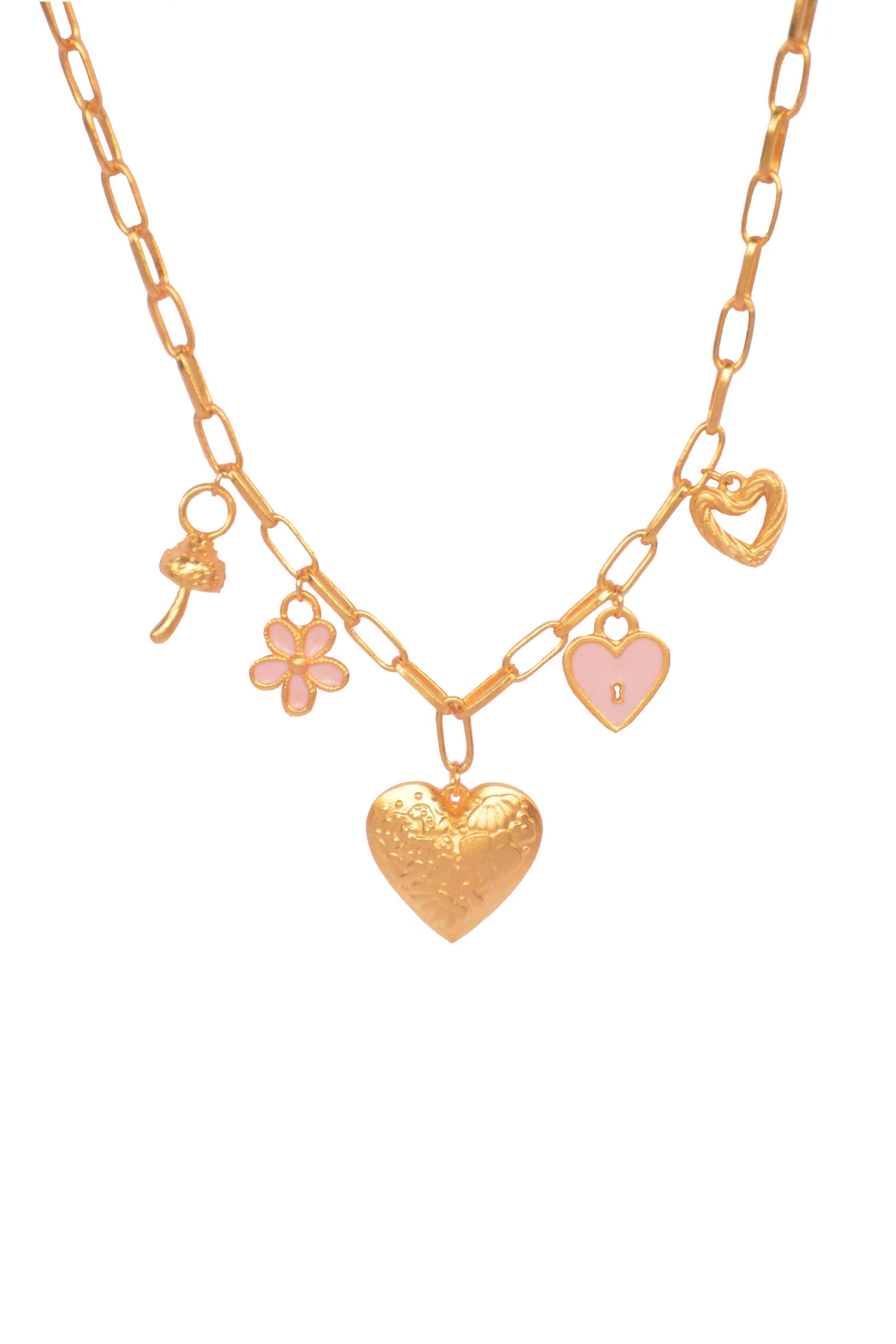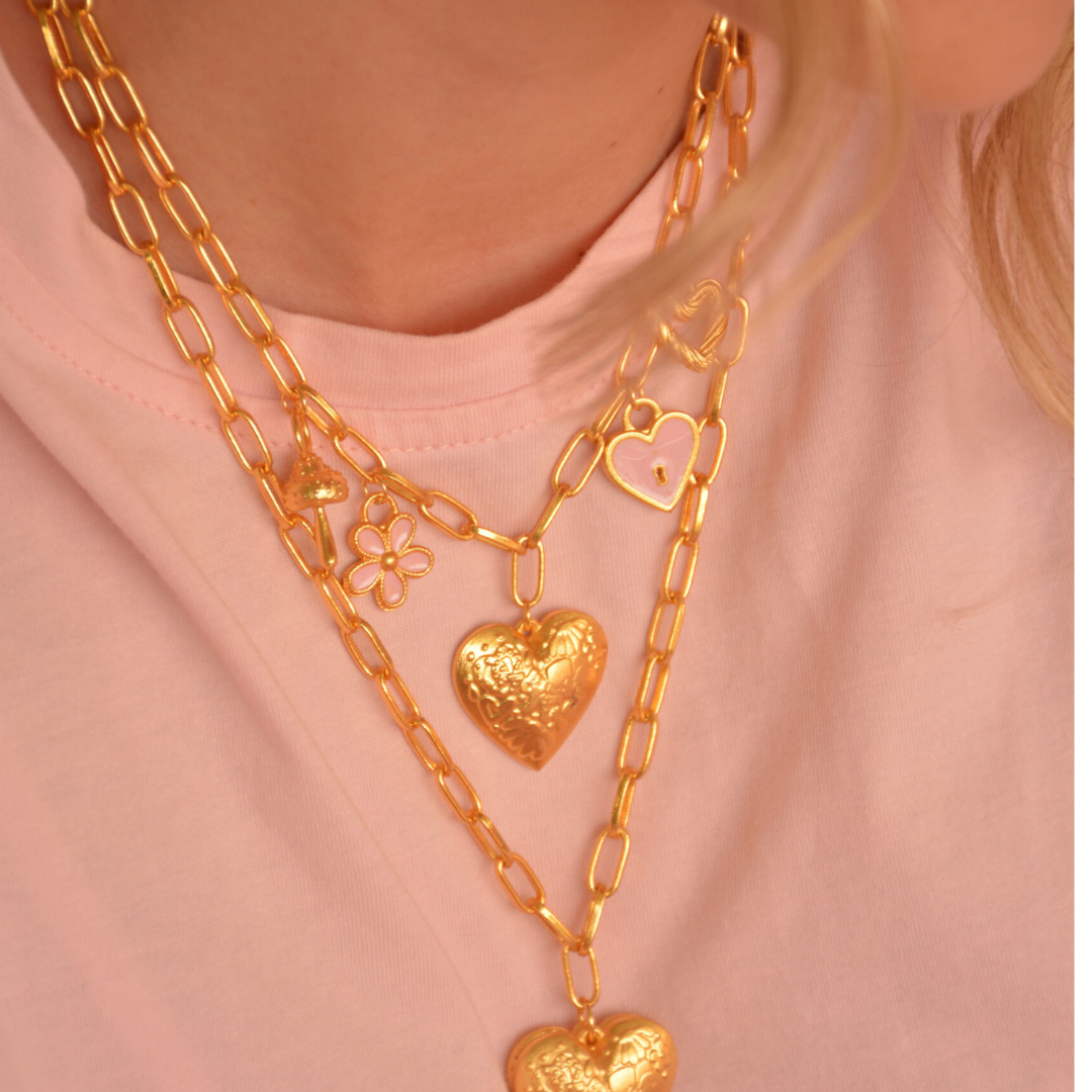 Cadena charms corazon flor hongo candado