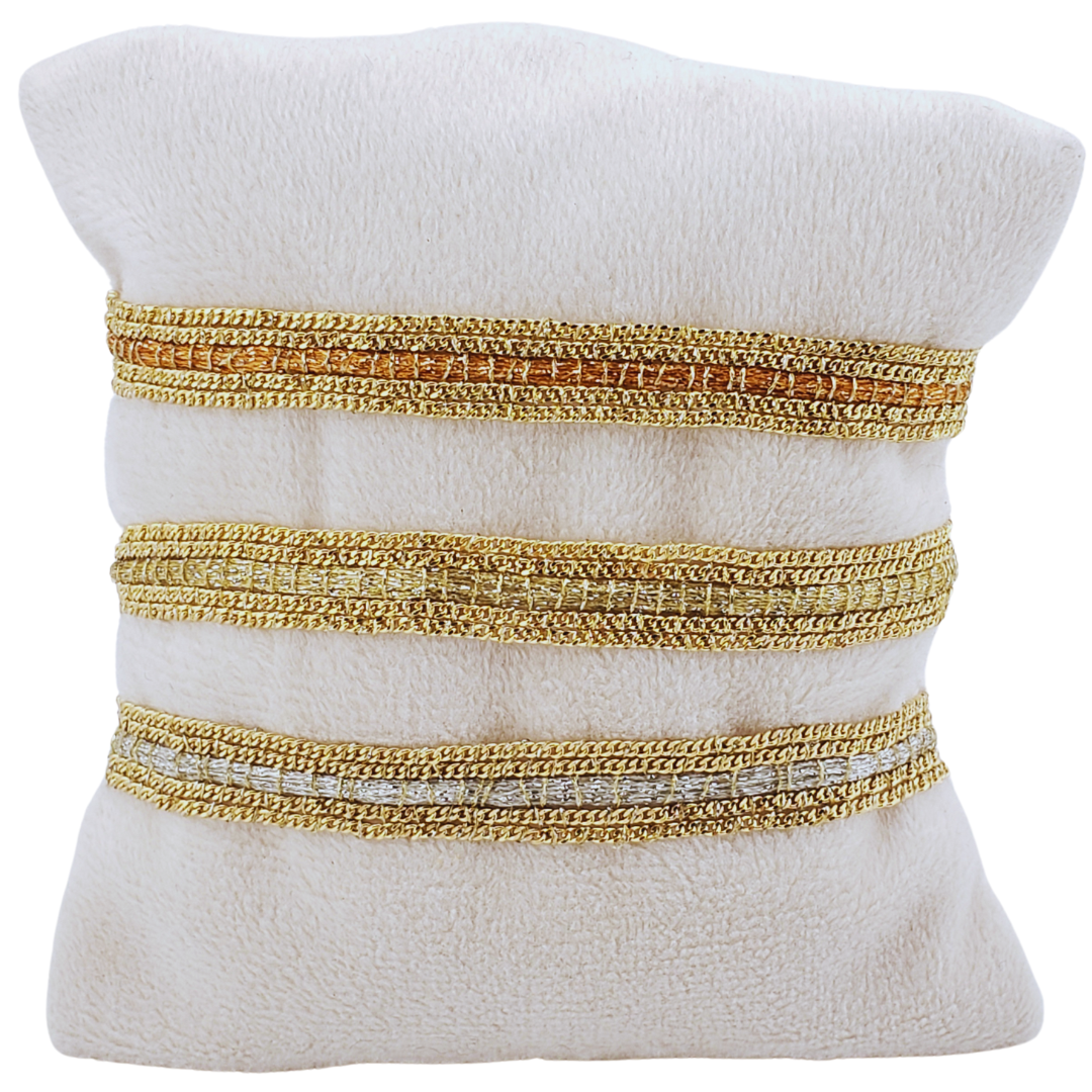 Bronce chapado 24k en dorado e hilo en diferentes tonos