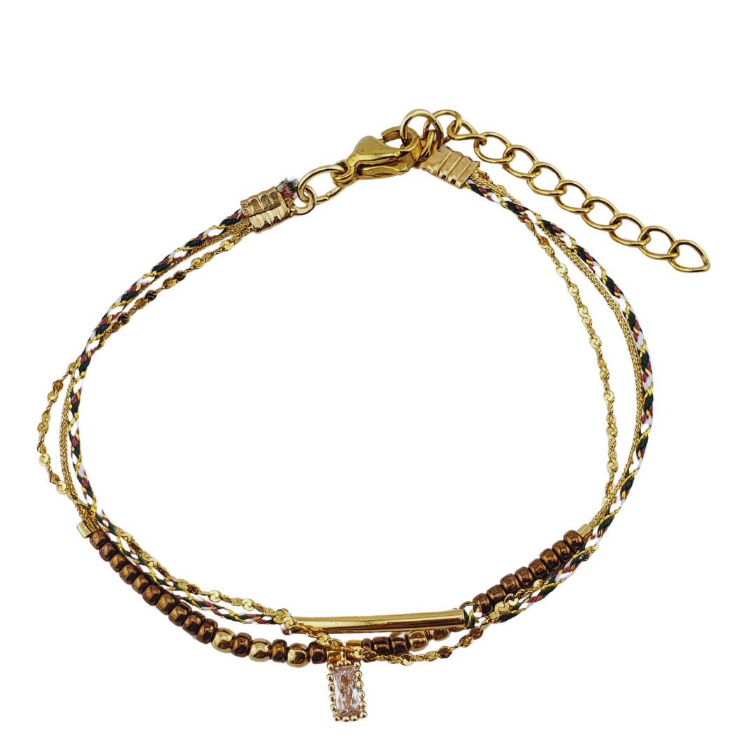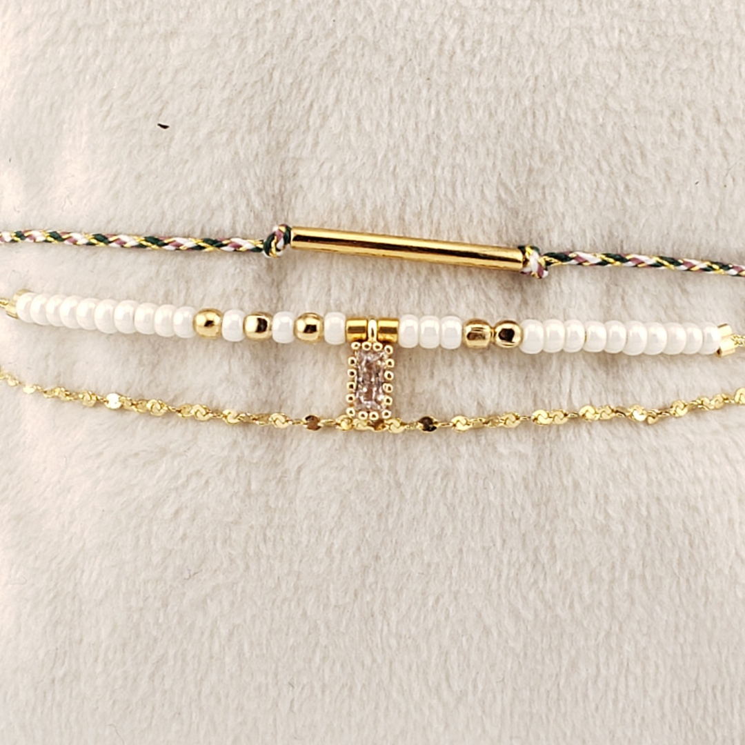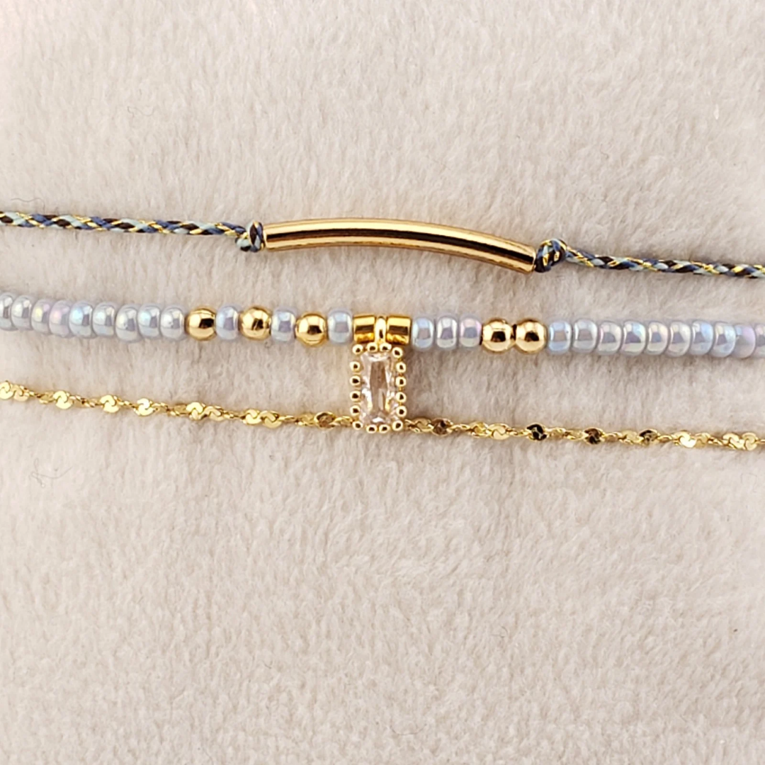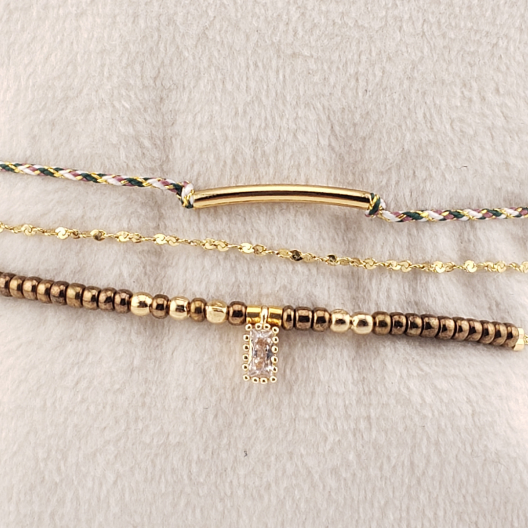 Hilo algodon, circonia y cadena de acero con 2 micras de dorado